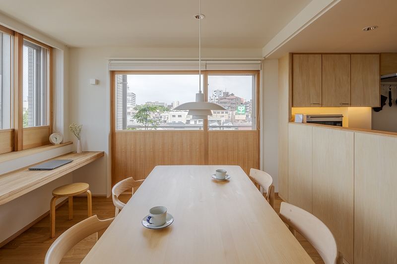 こちらからも木製の内窓によって整えられた眺望が楽しめ、普段のお料理の時間が快適に、そして楽しくなりそうです。