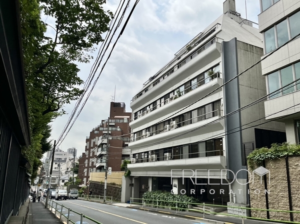 1975年6月築の7階建で、白とグレーの水平ラインが際立つモダンな佇まいのマンションです。100平米ほどの大型住戸を中心とする総戸数12戸の落ち着いた規模のコミュニティです。