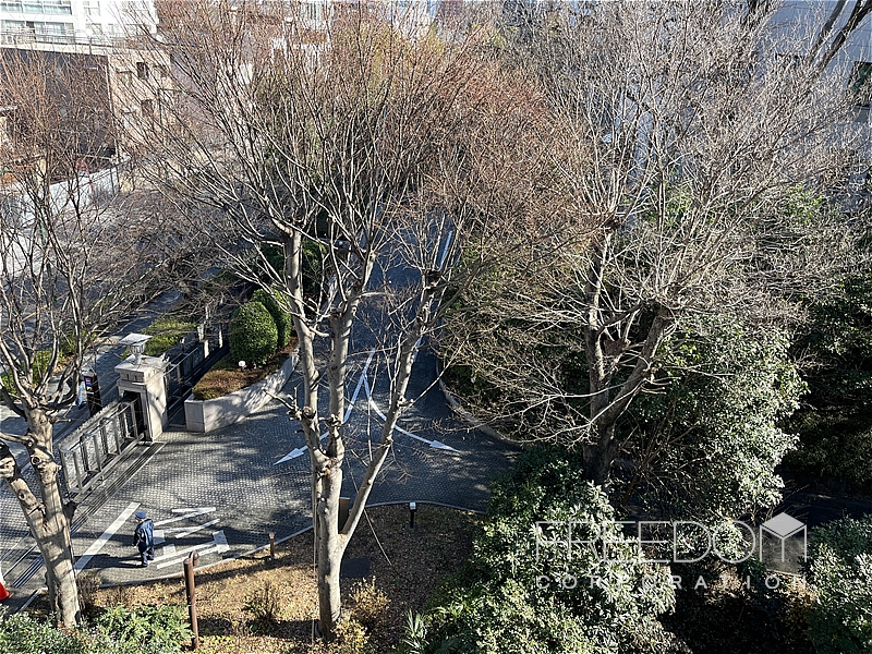 マンションの目の前に位置する三田共用会議所は、実業家・渋沢栄一の私邸があった由緒ある場所で、現在は官公庁の会議施設として利用されています。敷地は緑に囲まれており、冬には落葉により日当たりが確保され、新緑の季節には潤いのある借景として楽しめます。