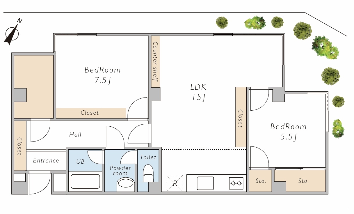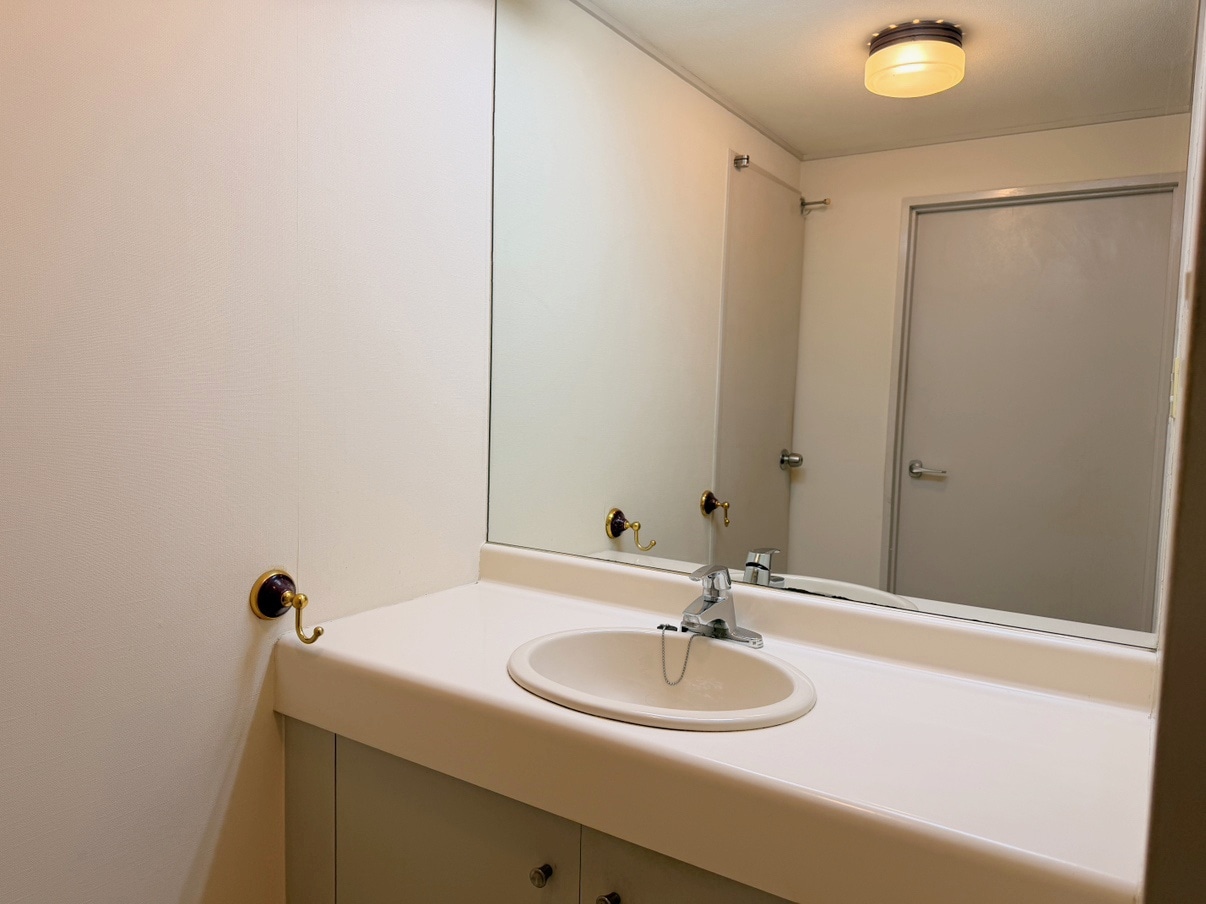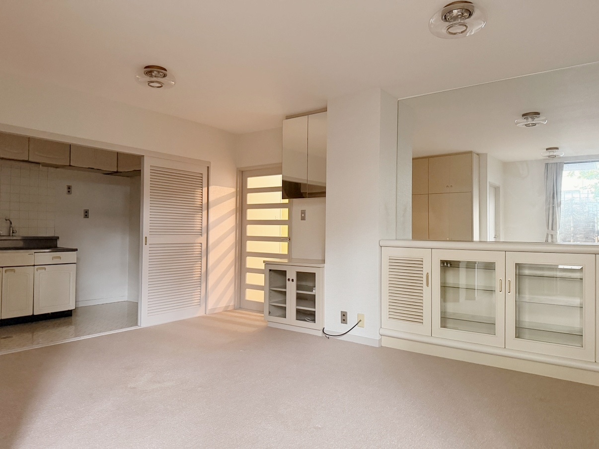 撮影日のお天気もあいまってしっとりと落ち着いたの印象ではありますが、リノベーション次第ではお気に入りの照明やアート、キャンドルなどの温かい灯りがとっても映えそう。奥行きのある大人なインテリア空間を実現できそうです。