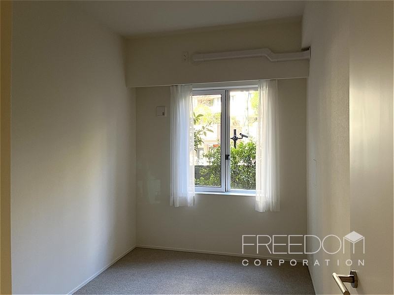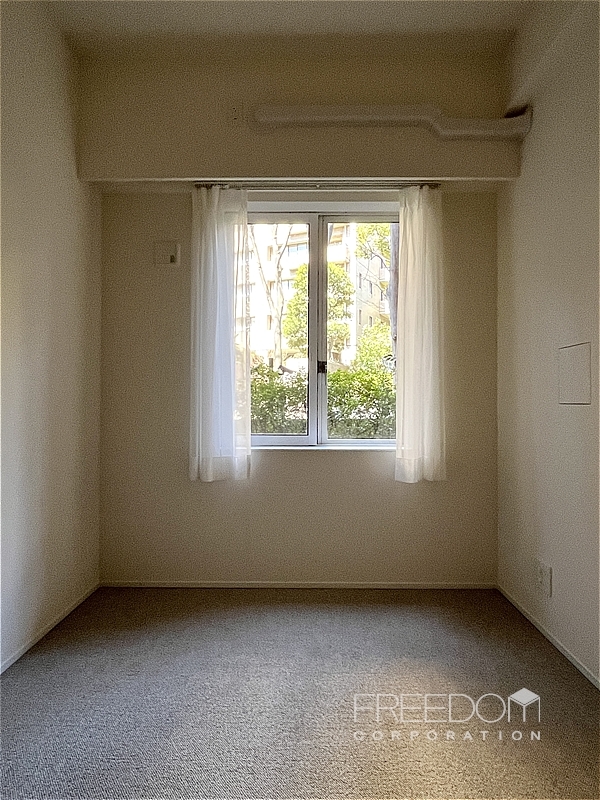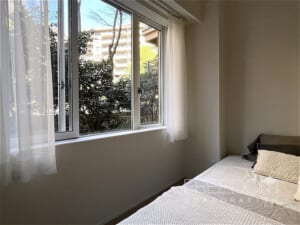 洋室2は約4.9帖で、縦長の開き窓がクラシカルな印象です。窓を開けると鳥のさえずりも聞こえ、緑に囲まれたガーデンヒルズならではの穏やかな暮らしを実感できそうです。間口の広いクローゼットが備わっており、収納面もしっかりと整っています。