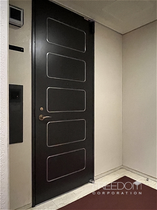 また、玄関ドアの横には分譲当時から受け継がれた「新聞受け」の小さな扉があり、今も現役。こうした細かな工夫にもヴィンテージマンションならではの質の高い暮らしが窺えます。